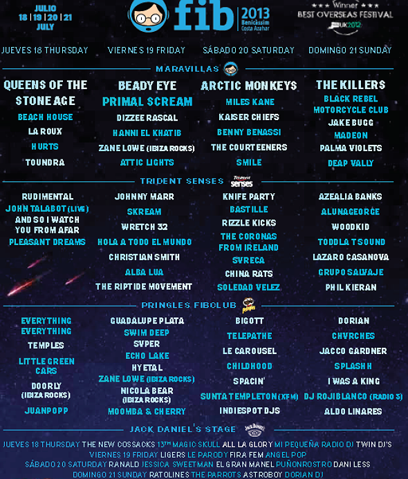 El FIB 2013 se celebrará en el recinto de conciertos de Benicàssim los días 18, 19, 20 y 21 de julio. Las entradas puedes obtenerlas a través de su web www.fiberfib.com.
