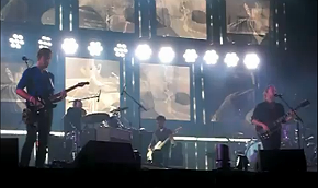 Yorke, Jonny y Colin Greenwood, Ed O’Brien con Phil Selway aparecían repartidos en distintas imágenes del escenario. Con un Thom Yorke en permanente danza y una entrega física y espiritual total, acababa contagiando a su público, y eso que su setlist estaba formado en su mayor parte por canciones grabadas después del OK Computer.»10 años es mucho tiempo-vamos a intentar que la próxima vez sea (el intervalo) mucho menor», son de las pocas palabras que pronunciaron a lo largo del concierto. Unas 55 mil personas que les coreaban en Algés seguramente firmaban para que esas palabras se hicieran pronto realidad.
