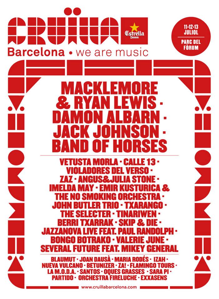 Quedan menos de dos semanas para el Cruïlla Festival de Barcelona. La séptima edición del festival veraniego por excelencia de la capital catalana nos trae, como siempre, un cartel plagado de estrellas nacionales e internacionales, caracterizándose una vez por el más absoluto y radical eclecticismo. Hip-hop, brit-pop, música bereber, inclasificables propuestas de electrónica pop, postrock instrumental o el más habitual pop-rock español, son solo algunos de los muchísimos géneros y estilo representados por los más de 30 artistas que participarán en los tres días de festival. Planteado en principio para dos jornadas, la norma durante estos últimos años, la organización se ha visto obligada a ampliar al domingo el programa para la recolocación del concierto de la cantante francesa Zaz, uno de sus principales atractivos.