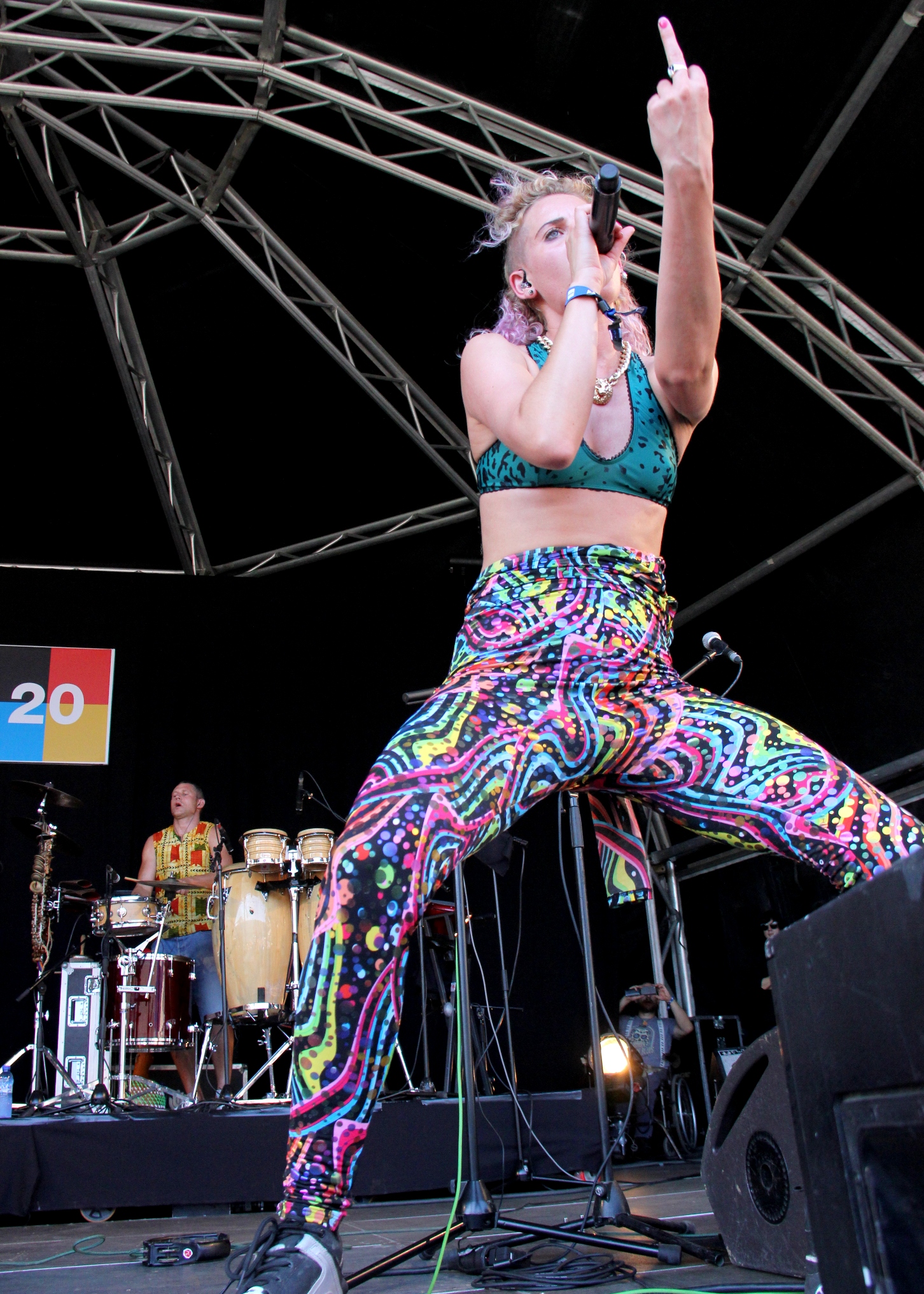 La extravagante Cata Pirata, natural de Johannesburgo, lidera esta banda multifuncional que, al calor intenso de las 3 de la tarde, cegó a un público entregadísimo con un entramado de canciones imprevisibles, tremendamente rítmicas y bailables, y llenas de una fuerza y un carácter ecléctico que no solo bebe de los elementos típicos de la electrónica. De alguna manera, su música podría representar ese absurdo collage que es la división fronteriza de su áfrica natal, con intromisiones/imposiciones más que influencias, e incluso la del mundo entero. Skip&Die rozan la caricatura global, en el buen sentido, y dan por bueno cualquier cambio de rumbo: se mostraron punzantes, con un apetito goloso y una acidez de estómago interminables, y muy propensos a ahondar en las más diversas formas rítmicas. Pero sin duda, el verdadero atractivo de la banda es ella, Cata Pirata: porque la tarde iba claramente de chicas, con tres tipos bien diferenciados.