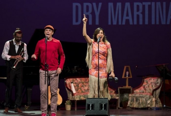 Nada más acomodarnos en el patio de butacas los ojos se dirigen a la lámpara y el par de sofás situados en el centro del escenario, que junto a los variopintos instrumentos esparcidos aquí y allá conforman una estampa íntima, casera. Y esa era, precisamente, la intención de Laura Insausti: hacernos sentir como en el salón de una casa imaginada que poco a poco iría acogiendo convidados para celebrar el décimo aniversario de su banda, Dry Martina. Hace unos meses la jarana hubiera sido de órdago, claro, pero ahora, con el aforo del Cervantes limitado a doscientos espectadores, los festejos adquieren una forzosa atmósfera familiar. En cualquier caso, el combo malagueño desplegó durante su concierto —enmarcado en la programación de un Festival Terral igualmente adaptado a las circunstancias— un repertorio enérgico y bien calibrado que concedió protagonismo a las sonoridades propias del swing, el soul y el jazz pero siempre condimentadas con una pizca de funk, electrónica, flamenco y rock’n’roll.