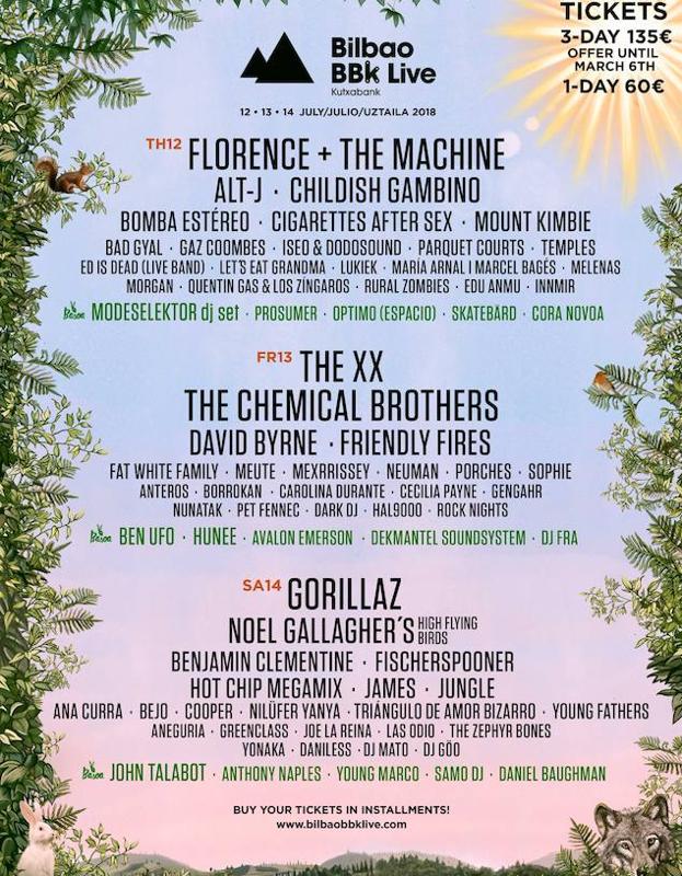 Florence + The Machine, Childish Gambino, Cigarettes After Sex, Mount Kimbie, Hot Chip Megamix, Friendly Fires, entre otros, completan el festival de Kobetamendi.