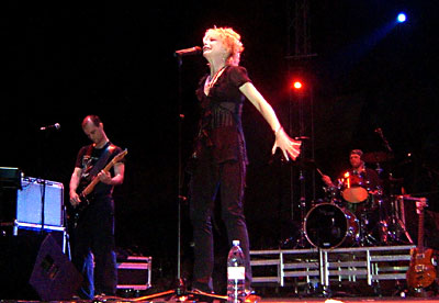 Uno de los platos fuertes, como hemos comentado un poco más arriba, fue el directo de Pluramon junto a Julee Cruise, la voz de Twin Peaks. Pluramon puso la banda sonora y Julee la interpretación. Entre toda la maraña de guitarras, teclados, batería y efectos varios, la voz de Julee llegaba a nosotros en susurros para, poco a poco, alzarse en crescendo hasta límites mágicos. Todo ello mientras miraba fijamente algún punto del público y lo señalaba, alzaba la mirada perdida hacia las almenas o se retorcía en el suelo mientras cantaba. Incluso abrió un libro de cuentos infantiles y empezó a leerlo (se trataba de Horton hears a who! de Dr. Seuss). El momento cumbre llegó cuando comenzaron las primeras notas de Falling, el archiconocido tema de Twin Peaks. De lo mejor del festival sin duda.