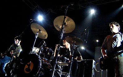 Era ya tarde cuando una de las bandas más esperadas saltó al escenario del AV. Shellac ofreció, posiblemente, el mejor concierto del AV. Steve Albini, Bob Weston y Todd Trainer se colocaron a escaso medio metro del foso y no se moverían de allí durante toda su actuación. Casi hora y media de guitarrazos y sudor, podriamos decir. Con una energía fuera de lo común, Albini arrancaba riffs incendarios mientras la batería y el bajo, bestiales, acompañaban de manera soberbia la ejecución de temas como Crow o My black ass. Tuvieron, además, un entendimiento total con un público que saltaba y vibraba con sus canciones. La anécdota la protagonizó el bajista Bob Weston, que invitó a algunas personas a que le preguntaran cualquier cosa mientras Steve cambiaba una de las cuerdas de su guitarra. En definitiva, un concierto lleno de energía y que, prácticamente, servía para cerrar el festival.