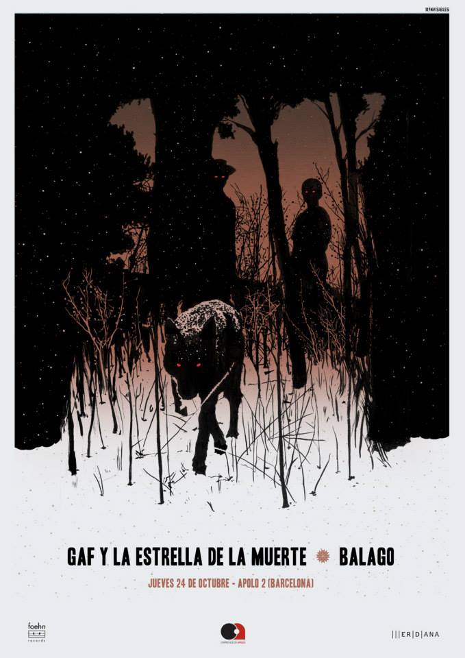 Anoche en La[2] de Apolo había doble cita con lo invisible. Dos representantes de la casa Foehn, coincidente y a la vez complementarios en su definición, actuaban a la luz de la escasa iluminación de la sala, en lo que fue un ambiente propicio para que ambos, cada uno desde su perspectiva, reinterpretaran su visión de la oscuridad. Los canarios GAF eran, valga la redundancia, la estrella invitada en la noche, y el trío local balago actuó de anfitrión, abriendo también en el tiempo la velada y caldeando, dentro de lo posible, una atmósfera que resultó en todo momento un tanto incompleta. Fueron dos partes bien diferenciadas, 45 minutos los primeros y una hora los segundos, en las que el público disfrutó seguramente de manera desigual, culminando más los canarios que incitando los catalanes.