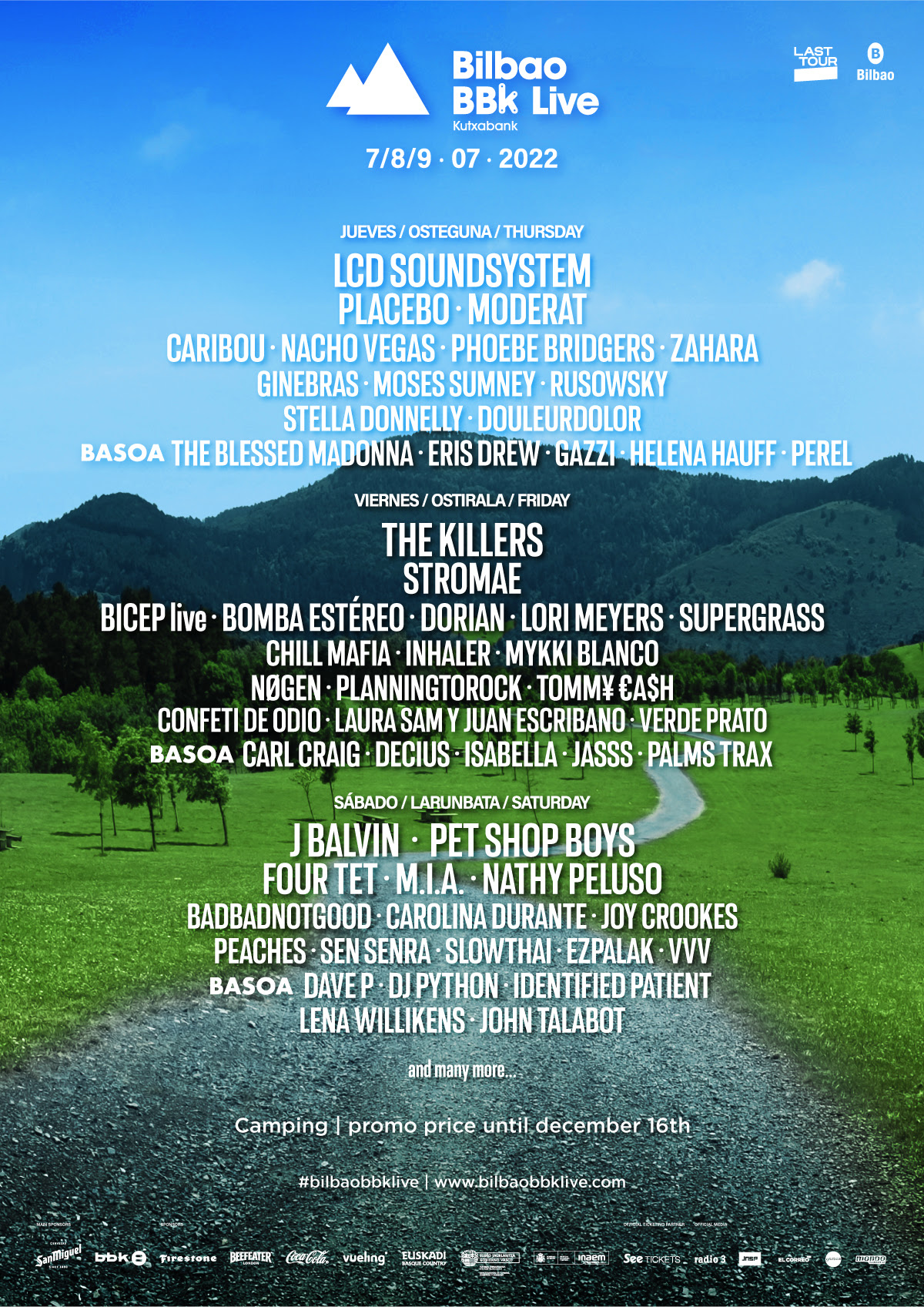 Se suman al line-up los legendarios LCD Soundsystem como cabezas de cartel del jueves, siendo este el único festival europeo en el que actuarán en 2022. Además, la banda liderada por James Murphy elige la ciudad de Bilbao para celebrar dos décadas encima de los escenarios, así como el 20 aniversario de su sello DFA, con una programación especial durante la semana del festival, la cual anunciaremos próximamente. J Balvin, uno de los 10 artistas más escuchados del mundo, también elige Bilbao BBK Live como único festival en el Estado en 2022, para liderar la jornada del sábado con su arsenal de hits reggaetoneros y defender el legado y la importancia de la música latina. El belga Stromae volverá a los escenarios, también con cita única en el Estado y con nueva música tras ocho años de silencio, de importante relevancia ya que solo ocurrirá en esta edición del festival. No serán los únicos en incendiar Kobetamendi, el trío Moderat traerá el sonido Berlín con temas conocidos por todos como A New Error, Bad Kingdom o Rusty Nails. Seguiremos contando con cabezas de cartel previamente anunciados, The Killers, liderando la jornada del viernes con dos nuevos trabajos bajo el brazo, el icónico dúo electrónico Pet Shop Boys, y la presentación del próximo LP de Placebo.