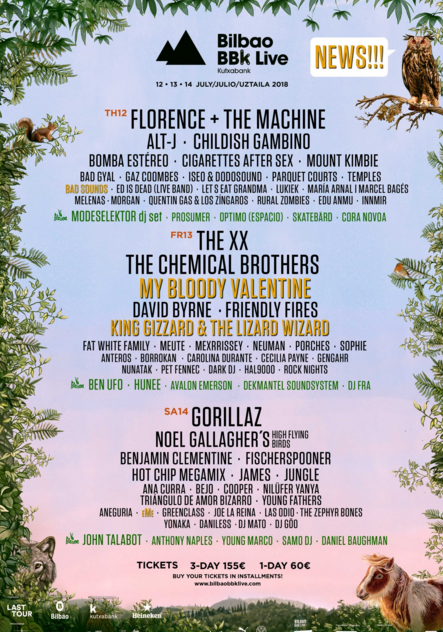 El festival de este año se celebrará del 12 al 14 de julio de 2018 en la montaña de Kobetamendi de Bilbao. Con estos nombres, ahora sí, el cartel queda como sigue: