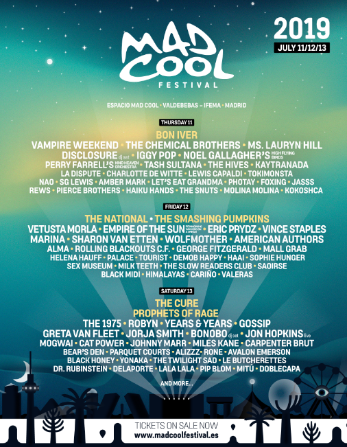 Ahora, a falta de los ganadores del Mad Cool Talent by Vibra Mahou y alguna sorpresa más, Mad Cool Festival completa su cartel de 2019, del que por cancelación unilateral de toda su gira europea desaparece H.E.R y por cuestiones logísticas ajenas a nuestro control, se cae también Teenage Fan Club. Ms. Lauryn Hill y American Authors ocupan su lugar.