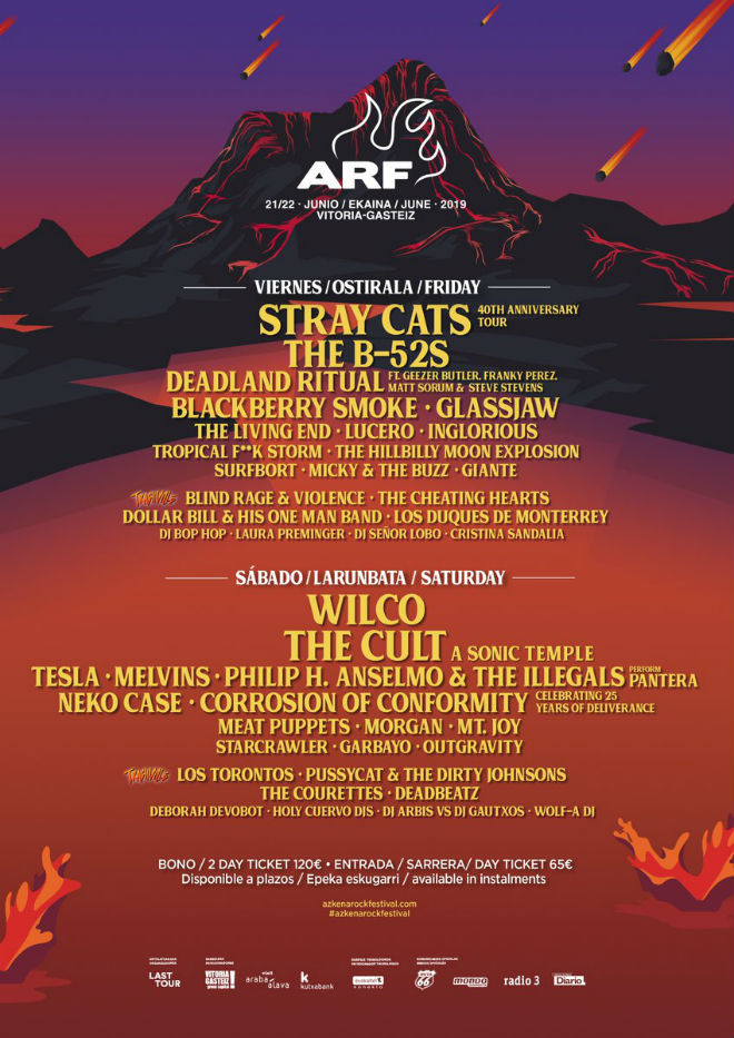 Azkena Rock Festival celebrará su edición número 18 los próximos 21 y 22 de junio de 2019 en Vitoria-Gasteiz. Con estas confirmaciones ya está el cartel completo y puedes ver su composición por días.
