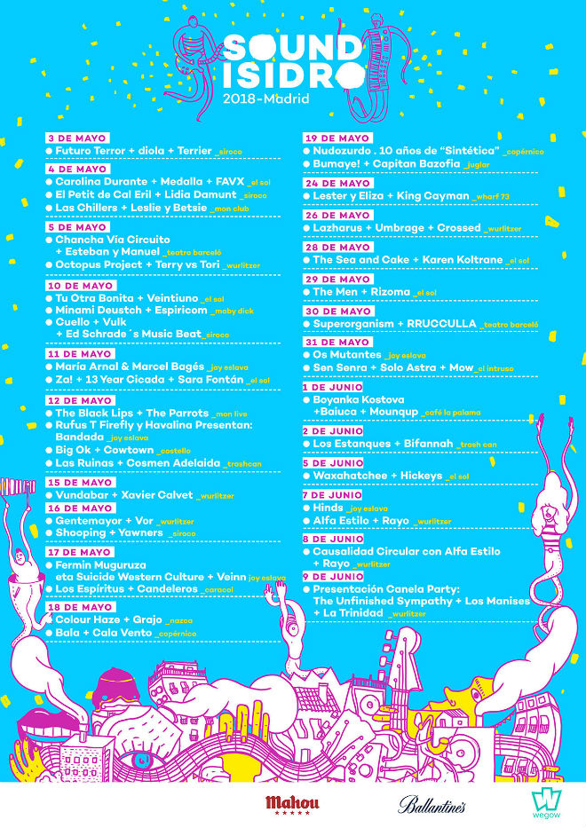 Un cartel en el que se ha cuidado equiparar el número de mujeres y hombres que formen parte de Sound Isidro, sumando una enorme calidad al cartel de este modo (Hinds, Lidia Damunt, Las Chillers, Sara Fontán, Hickeys, Rayo, Waxahat