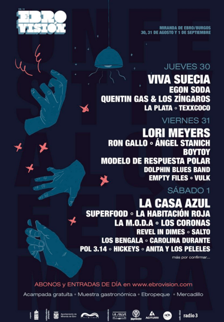 Además de las actuaciones en directo el festival también cuenta con una muestra gastronómica, un espacio habilitado para niños en el “Ebropeque”, exposiciones y mercadillos, por toda la ciudad. Las entradas ya se pueden comprar en www.ebrovision.com y así queda el cartel por días: