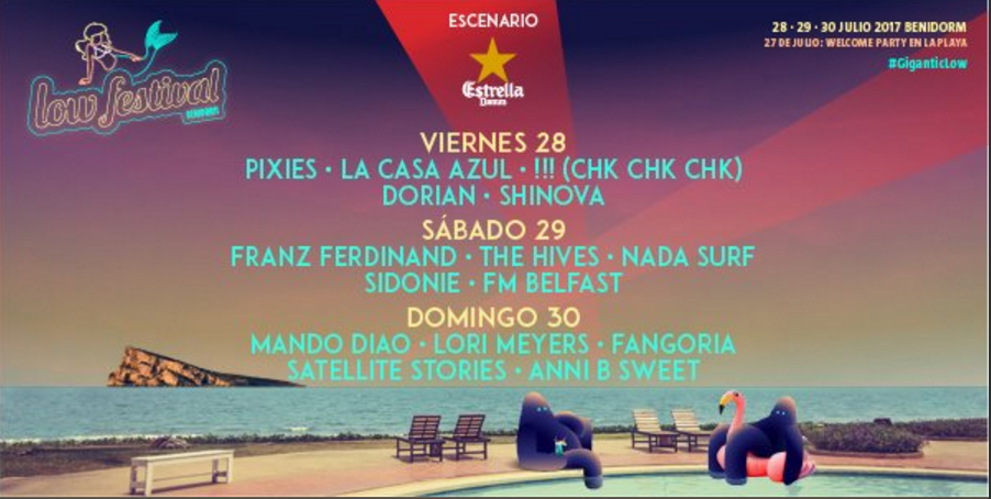 El festival se celebrará los días 28, 29 y 30 de julio en la Ciudad Deportiva Guillermo Amor de Benidorm (Alicante). Las entradas anticipadas están a la venta en www.lowfestival.es y www.ticketea.com. El cartel por escenarios queda como sigue: