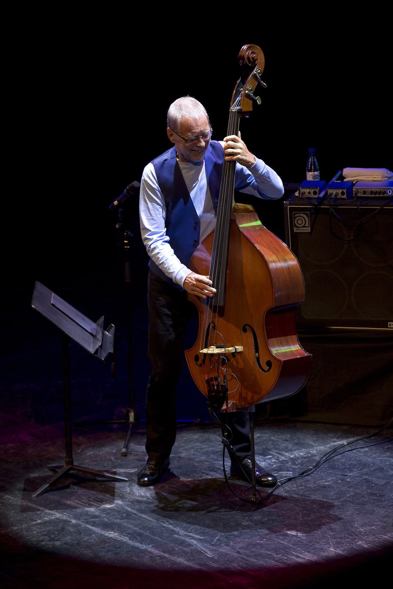 Otro contrabajista para el recuerdo, Dave Holland, pisó también el escenario cervantino. Son Obed Calvaire a la batería y Kevin Eubanks a la guitarra quienes acompañan a un Holland que, al igual que Carter, continúa en el candelero gracias a sus colaboraciones con otros músicos y al lanzamiento de discos de provecho. Encima de las tablas se muestra inconformista y brioso, más cercano a Coleman que a Carter en esa búsqueda de no se sabe qué. Eubanks, que perteneció durante quince años a la banda del programa de Jay Leno, demandó atención constante, conjugando en las seis cuerdas de su guitarra, en fondo y forma, un jazz fundamentado en pesados riffs, en decibelios sin complejos. Un desmelene del que brotaron solos por doquier, de los que cabe destacar, además de la evidente velocidad y clarividencia de Holland, la traca final de un aplastante Calvaire.
