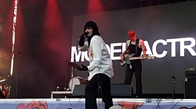 En el último y más concurrido día del festival —más flojo, a mi parecer, en cuanto al cartel— destacaba a primera hora la presencia de Jasmine 4.t, con su característico cabello azul y rosa, que interpretó canciones de su notable álbum debut, You Are The Morning. Este trabajo ofrece una visión positiva del amor, basada en su experiencia como mujer trans. En un momento dado, abordó la reciente decisión del Tribunal Supremo del Reino Unido de excluir legalmente a las mujeres trans de la definición de «mujer».