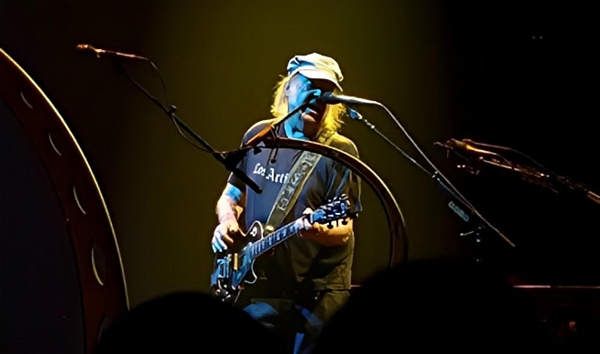 Neil Young actúa como un profesional en su oficio, ensimismado y completamente absorto en su música, apenas mostrando curiosidad por lo que ocurría más allá del escenario, salvo algún cortés «¿How are you doing out there?». La extensa Cowgirl In The Sand, de su segundo álbum Everybody Knows This Is Nowhere (1969), se convirtió en una ráfaga de casi diez minutos. Por su parte, Be the Rain, un infrecuente manifiesto ecológico de 2003, adquirió un aire activista al cantar parcialmente a través de un megáfono, un ingenioso dispositivo integrado en su micrófono y sostenido por un soporte futurista.