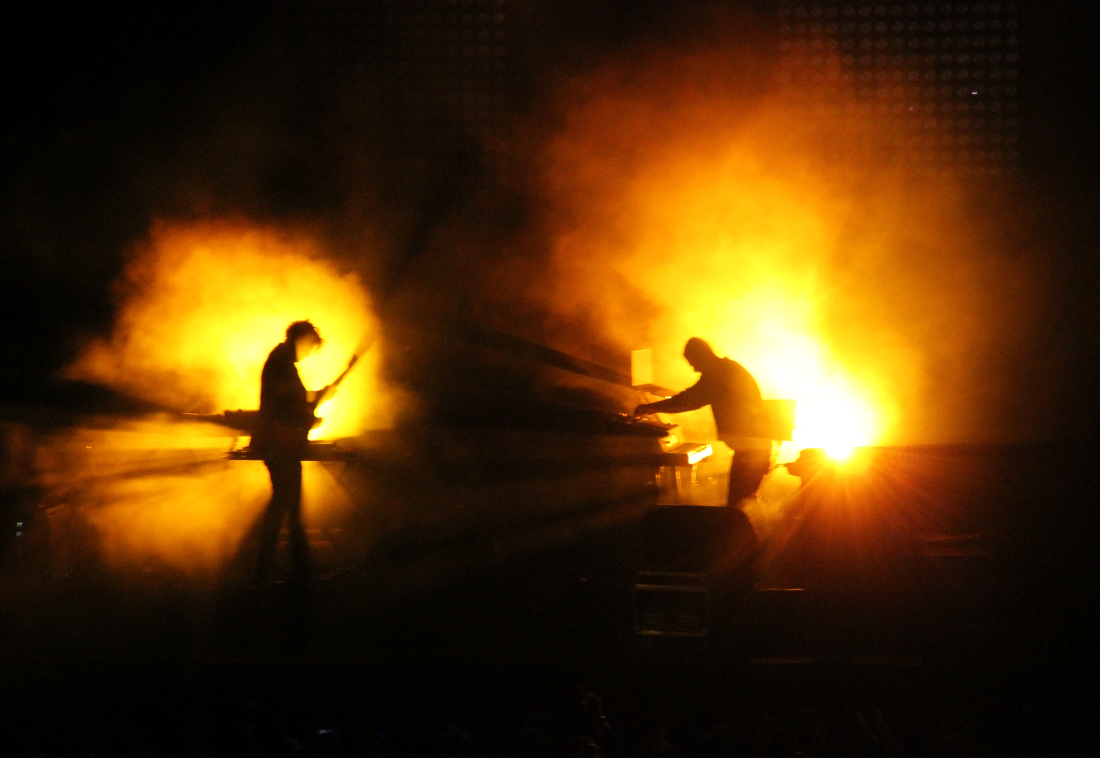 No vimos entero el show de The National: Darkside nos llamaba poderosamente desde el escenario Ray-bay, y allá fuimos. El niño prodigio, acompañado de su escudero y guitarrista Dave Harrington, hicieron de la electrónica un arte en su estado más glorioso: vibrante, categórico en el ritmo y en los tempos a la hora de acelerarlo, y brillante en todo lo que respecta a melodías, retoques, texturas, efectos y atmósferas, Nicolas Jaar demostró ser, en todo, un auténtico superdotado sin límite alguno. Con permiso de Moderat, que en cierto modo son ya de una generación anterior, lo del chileno-norteamericano el viernes fue de lo mejor de electrónica que se pudo escuchar en esta edición de Primavera Sound. Después de eso, el show de Nic Offer y sus !!! resultó perfecto para destensar, echar un último baile, y de paso el cierre.