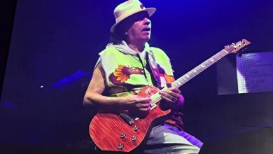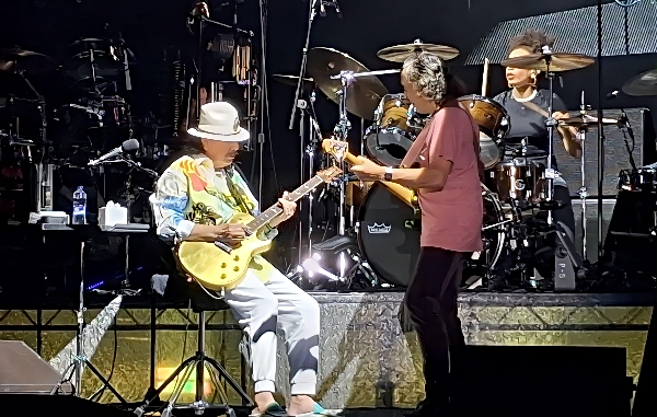 No sonó Europa, su nº1 en España, pero sí Samba Pa Ti, uno de los momentos clave de la noche. Todos los sonidos eclécticos de Santana, del afrobeat a las influencias jazzísticas, se conectaban – prácticamente sin pausas entre canciones- con el hard rock de Hope You’re Feeling Better e incluso hubo un guiño para los más jóvenes con la reciente canción compuesta junto a Grupo Frontera, Me retiro. Hubo algún momento para disertaciones excéntricas “Eres un rayo de luz. Eres divino», dijo, señalando al público «Así que cuando te mires al espejo, tómate un tiempo para validarte… Porque eres digno de la gracia de Dios», un lema nos hizo repetir hasta tres veces como si de un ritual se tratara. Put Your Lights On, cantada hábilmente por el guitarrista de apoyo Tommy Anthony, mientras las velas en la enorme pantalla de video detrás de la banda se hacían eco en los móviles de la multitud. El final llegó con el esperado Corazón espinado, una canción que aquí en España fue su mayor éxito de Supernatural. El bis abrió con Toussaint L’Ouverture, una improvisación feroz que permitió a cada miembro de la banda demostrar su maestría, con el momento culminante de la baterista Cindy Blackman en el centro del escenario. Smooth sirvió como cierre de su actuación y de su visita por nuestro país. Tal vez Santana no consiguiera devolvernos a la paz, la unidad, en defintiva, el espíritu de Woodstock, tal y como inicialmente pretendía, pero nos dejó con las mejores sensaciones. Fue, al menos, un armisticio.