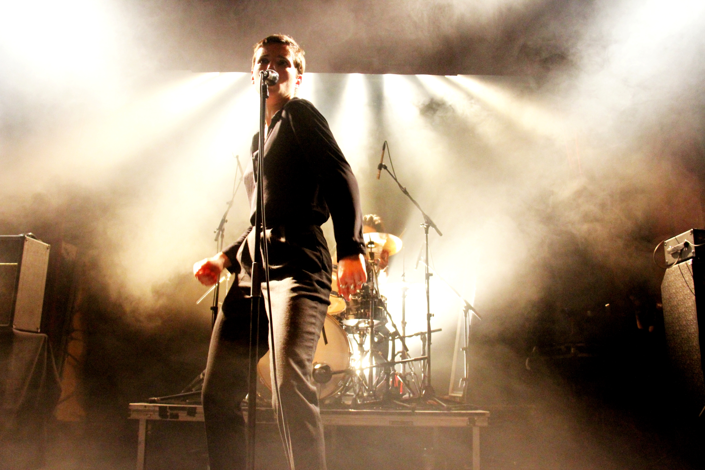 De riguroso negro, con peticiones tan razonables como que la gente dejase de airear frente a ella sus móviles, y preocupada por la salud de una espectadora cuando un cafre casi la lesiona al saltar impunemente desde el escenario en un esperpéntico arranque de locura, la cantante de origen francés manejó la noche a su absoluto antojo. Sus movimientos sobre el escenario eran ágiles y enérgicos, como los de una pantera negra en su hábitat y en plena acción. También las demás integrantes de la banda iban de negro, e interpretaron cada una su papel aportando todas fuerza y tirantez a una tensión atmosférica que acabó reinando en todo momento. Porque al fin y al cabo, la experiencia de Savages no puede explicarse sin esa fantástica sensación de riesgo y tentadora franqueza que desprenden en directo sus afilados temas.