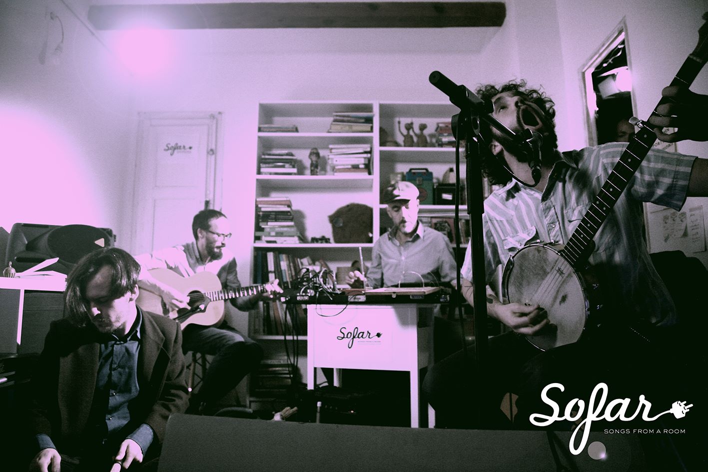 Lo más extraordinario de asunto es que el público acude a la cita sin tener ni idea – salvo filtraciones y rumores, la salsa del panorama musical de la condal – de quién va a tocar esa noche; pero con la certeza, debido a los ya abundantes precedentes, de que verá algo interesante. Combray, Second, Núria Graham, The Saurs, El Último Vecino y I Am Dive, entre otros muchos, y solo en los últimos meses, han pasado por el escenario íntimo e itinerante del Sofar Sounds. Los invitados en esta ocasión eran tres bandas de recorrido desigual, pero todas igualmente atractivas. En primer lugar actuaron Casa das Feras, una formación barcelonesa que ha debutado en formato álbum en septiembre de este mismo año, y que sorprendió al personal con una propuesta de sabor muy rústico, y coronada por la fascinante voz de Anna Biermann. En realidad se trata de un trío de cuerdas – contrabajo, banjo y guitarra – que coquetea con el country americano a la vez que bebe de ciertos ritmos gypsy muy bien amalgamados. Un sonido que, desgraciadamente en sentido negativo, llamó también la atención de algún vecino quejica.