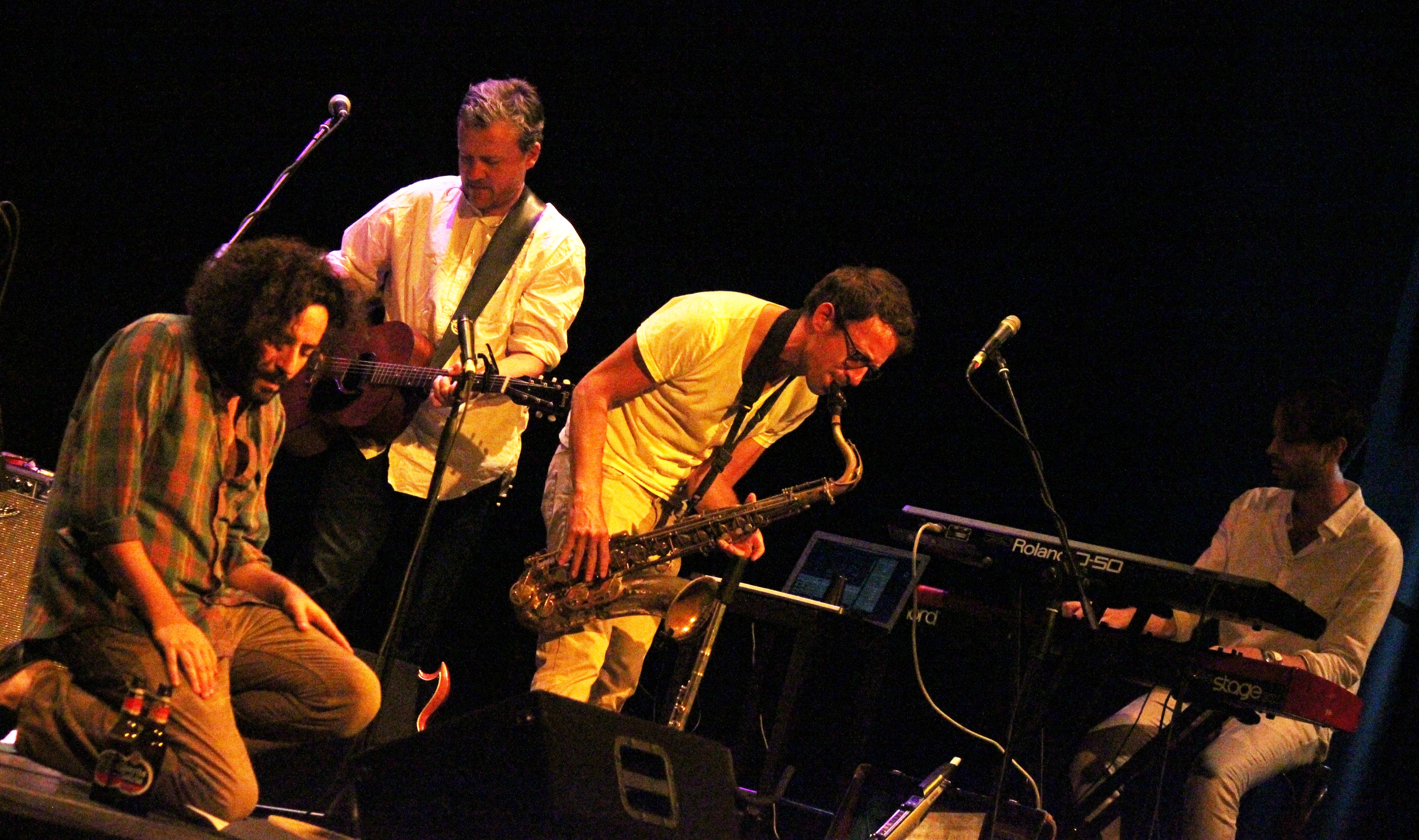 Dedicó más o menos la mitad del repertorio precisamente a este último trabajo, contando con un trompetista que mezclaba su propio instrumento electrónicamente, y otro músico que, aparte de dominar el saxo y la travesera, tocó en un par de temas una extraña flauta electrónica de lo más sofisticada. Los vientos del Kaputt. Una trompeta siempre lejana que tiñe toda la composición de nostalgia y amena felicidad recreada; y un saxo lleno de glamur, vestido de blanco inmaculado, que ayudó a llenar la sala de los buenos recuerdos que a todos nos vinieron a la cabeza al sonar Kaputt, el single que da título al Cd, Chinatown; o, con ayuda esta vez de la travesera, al sonar Suicide Demo For Kara Walker. Todo al compás de un fuego lento, pero ligero y volátil como el vuelo de un ave que planea disfrutando de su plena libertad.
