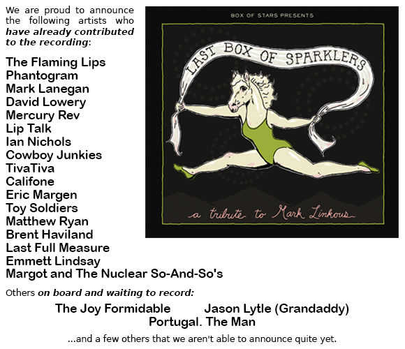 La organización Box of Stars, que promociona la incentivación de la salud mental a través de la música se ha aliado con el productor Dave Fridmann (Flaming Lips, MGMT, Mercury Rev) y Marc Fuller para confeccionar un disco de tributo a Mark Linkous / Sparklehorse que llevará el título de Last Box of Sparkles.