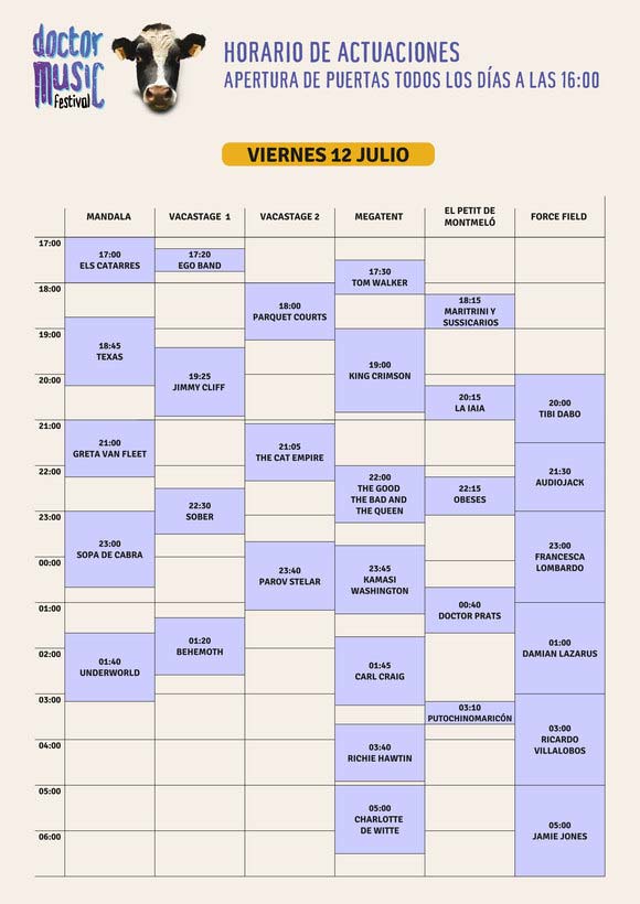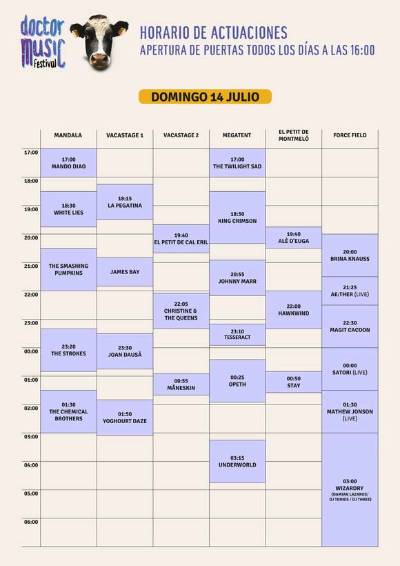 La organización del Doctor Music ha confirmado a los últimos grupos que participarán en el festival y han desvelado el horario completo de las actuaciones por día. Además, anuncian la caída del cartel del holograma de Frank Zappa debido a limitaciones técnicas.