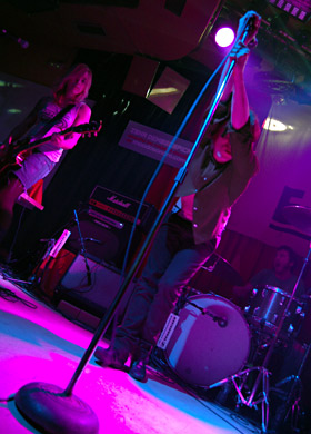 Con una propuesta mucho más cercana al punk rock, el cuarteto Bultacos no dejó indiferente a nadie. Sobre todo por un cantante pasado de vueltas y tremendamente histriónico. Dejó mucho espectáculo tras de sí, pero es muy difícil ser Jim Morrison, Iggy Pop o Roger Daltrey. En ese sentido he de reconocer que me puso las cosas muy complicadas a la hora de tratar de apreciar lo que hacía su banda. Por un lado estaba empeñado en enseñar su barriga, luciendo un hortera tatuaje de estrellas de colores que señalaban a su sexo. Por otro estaban sus desvaríos, como ese momento impagable en el que tiró el pie al suelo y siguió cantando sin darse cuenta de que el micro ya no estaba ahí. Esto, unido a una sala que habitualmente no suena muy bien con niveles altos de ruido, hizo que su actuación no quedara muy lucida, si bien la segunda parte del concierto fue bastante más interesante que la primera, excesivamente lineal.