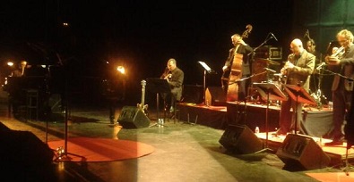 Anoche no sonó nada de Vivaldi, pero sí piezas de Benny Carter, Duke Ellington, Bessie Smith, Dizzy Gillespie, Lester Young, Oscar Peterson, Charlie Parker, Thelonius Monk o Astor Piazzolla. Y todas ellas de forma espléndida, acompañadas ocasionalmente por la voz de la cantante y actriz Pía Tedesco. También escoltaba a la música una pantalla en donde se proyectaban imágenes relacionadas con los fragmentos narrados que se escuchaban entre canción y canción, y algo de atrezzo compuesto por una mesita con libros y bebida, una máquina de escribir o un jersey que Cortázar hubiera llevado con agrado y entusiasmo, sobre todo si es para presentar los respetos a la trompeta del cronopio David Herrington, engranaje perfecto de un concierto irreprochable.