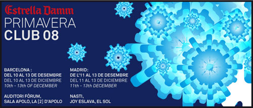 Ya puedes consultar el cartel definitivo del Estrella Damm Primavera Club 2008 que se celebrará en Diciembre en Barcelona y Madrid.