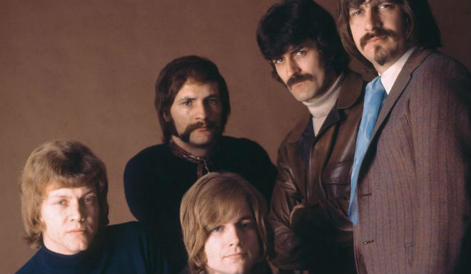 Thomas- foto segundo por la derecha- y Pinder comenzaron a tocar juntos junto a Denny Laine, Graeme Edge y Clint Warwick para conformar la versión original de los Moody Blues, que tuvo un éxito internacional en 1965 con su segundo sencillo Go Now y siguió con su álbum debut, The Magnificent Moodies, pero los lanzamientos posteriores no tuvieron éxito y, cuando Warwick se retiró de la música y Laine abandonó el grupo, la banda se disolvió.