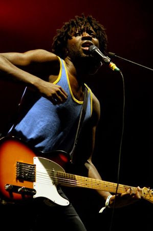 La banda liderada por Kele Okereke congregaba a muchos indies hambrientos de su música. Por si fuera poco para aumentar la expectación, meses atrás ya nos dieron muestra, en distintos conciertos, de su temperamento encima del escenario. Esta ocasión no era distinta, salvo quizás por la ubicación: no es lo mismo actuar en recintos pequeños que en grandes escenarios. Y siendo sinceros, su último disco es muy inferior a su debut. Algo que se nota en los directos, porque aunque los nuevos temas ganen mucho en vivo, no logran la magia de Banquet, Helicopter o Like eating glass. Si bien canciones como Hunting for withes, de su reciente A weekeend in the city (WICHITA RECORDINGS, 2007), suenan potentes y directas, un servidor se queda con This modern love por su belleza sonora y porque es una de esas canciones que provocan en uno ganas de saltar y bailar.