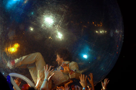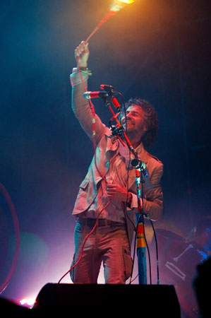 Como ya hicieron el año pasado en la edición del Primavera Sound, los Flaming Lips, capitaneados por Wayne Coyne, casi abandonaron sus casas exclusivamente para venir a tocar al Summercase. Esta vez traían una gran cantidad de globos de color verde que desataron una desmesurada locura en el escenario N. Acompañados por los «Papá Noeles» en un lado del escenario y por las chicas alienígenas en el otro, también tuvimos la oportunidad de ver la bola mágica -«the magic ball»- en la que Wayne se introduce para rodar por encima del público. El show estuvo en su casi totalidad reservado a sus tres últimos trabajos. Empezaron, como siempre, con Raze for the price, y no tardaron en comenzar el repaso de su último disco con Free radicals, Pompeii am Götterdämmerung o The yeah yeah song, esta última parece que destinada a ser parte de su propia campaña «antibush». Pero también tuvimos la suerte de escuchar Waitin’ for a Superman, Fight test o una Yoshimi battles the pink robots interpretada en un formato casi acústico.