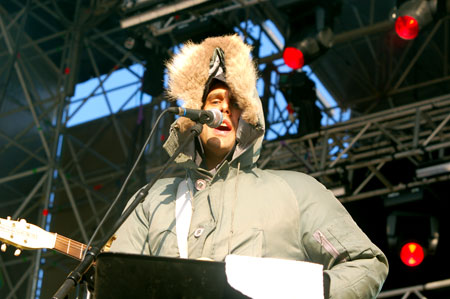 Bajo un sofocante sol, los integrantes de The Hidden Cameras subieron al escenario vestidos con una especie de burkha. Incluso el líder del grupo, Joel Gibb, salió con un anorak puesto encima; no sabemos si para desconcertar al personal o para protegerse de los rayos de sol. Él mismo comentaba al cabo de unas canciones: “¿Hace calor o somos nosotros que estamos calientes?”. Y mientras, las canciones de su último disco hasta la fecha, Awoo (ARTS & CRAFTS, 2006), se iban desprendiendo de esas “capas negras”. Una banda que en concierto no deja a nadie indiferente por la gran variedad de instrumentos que aglutinan encima del escenario y que hacen que su sonido parezca muy cuidado. Destacamos Learning the lie, de su último álbum, por el buen hacer del grupo al interpretarla.