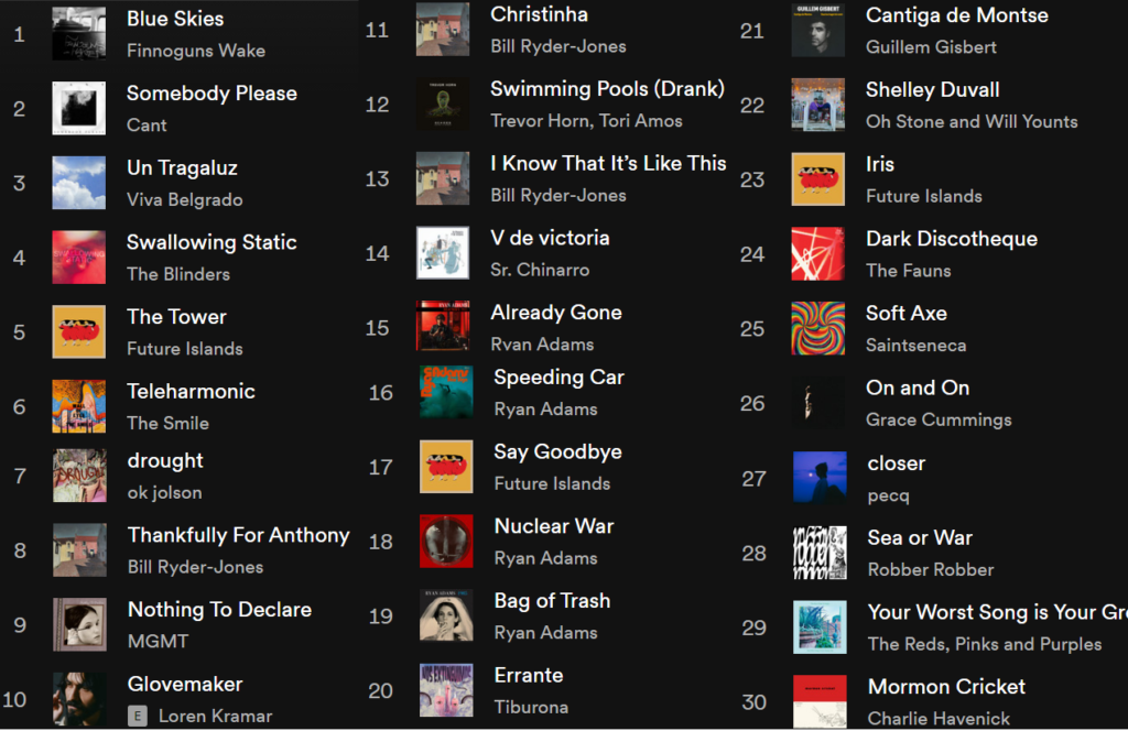 Y además los nuevos singles de 1999 write the future, Ace Landauer, Adrienne Lenker, Akira Galaxy, Andy Smythe, Arab Strap, Ben Abraham, Benedict October, BETWEEN FRIENDS, Bnny, Boeckner, Brain Club, Brittany Howard, Bullion, Burjek Collective, Cage the Elephant, Chastity Belt, The Chisel, Cloktopus, Coals, Coco, Corridor, Cuffed Up, The Derevolutions, Devon Thompson, Discovery Zone, DITTER, Dolly, Drahla, Dream of Venus, dwn bad, Dylan Kight, The Eagle Rock Gospel Singers, Eliza and the Organix, Ethel, Euan Blackman, Fabiana Palladino, fanclubballet, fontanarosa, Friday Dreaming, Gabriel Auguste, GEMZ, gglum, Gia Ford, Glimmer, Glitterer, Good Morning, Gossip, Grace Cummings, Gracie Gray, Graduation Speech, Grandaddy, Hailaker, Headaches, Hiatus Kaiyote, Highland Cinema, Homephone, IDLES, Indigo Waves, Into Surf, Isaac Desilusion, Jade Bird, Jane Penny, J Duran, Jenny XII, The Jesus & Mary Chain,Joseph of Mercury,Joyer, juicer, Justice/Tame Impala, Justin Ready, Kazy Lambist, Khruangbin, Klaus Johan Grobbe, The Klittens, Late Guest in the Party, Learn to surf, Liam Gallagher/John Squire, The Libertines, Liquid Mike, Little Kid, Lola Young, Loren Kramar, Luna Shadows, Mawzy, Miss Teen America, Mk.gee, Nadine Shah, Palace, Phosphorescent, Possumwulf, Real Estate, Robber Robber, Ruti, Saintseneca, Space Fight, Squid, Stay Inside, Sunglaciers, Tanlines, Terrace in Trance, Tierra Whack, tiger del flor, Vanishing Twin, Van Common, Villagers, Vitesse X, Whispering Sons, Winter, Yard Act o Yuma Abe. Y sonido nacional con agosto, Amor Butano, Camellos, daniel sabater, Emilia, Pardo y Bazán, Escuelas Pías, goni, Guillem Gisbert, HOLOGRAMMA, _juno, Karmento, Luz Futuro, Ripoll, Sarria, Sr Chinarro, Tiburona, Tórtel o Viva Belgrado