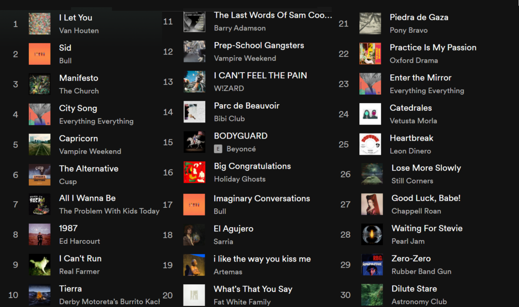 Además los nuevos singles de +/-, 22º Halo, Aaron Frazer, Abbie Ozzard, Afflecks Palace, A.P.Michaels, Astronomy Club, Aquafox, Arooj Aftaf, Artemas, Belle and Sebastian, Ben Seretan, Bibi Club, bikethrasher, Blair Lee, Bony Light Horseman, Camera Obscura, Cassandra Jenkins, Cathal Murphy, Chappel Roan, The dawn Phenomenon, Echo Thrills, FACS, The Folk Implossion, Fontaines D.C., Found Space, GIFT, Glass Animals, Goat Girl, Good Looks, gravepine, Guided by Voices, Hannah Mohan, Idaho, Indigo Waves, Isaak Waters, Jamie xX, Joe Goddard, John Grant, Kasabian, KYSSINGER, La Luz, The Lemon Twigs, Les Savy Fav, Lionlimb/Angel Olsen, Loma, Marky Wildtype,Marlin Beach, Maybird, Milan Ring, Moon Blue, Moonpools, My Gravity Girls, Niahm Regan, Nick Cave, Pamphlets, Parsnip, Päter, pearl moth, Peggy Gou, Pet Shop Boys, Phoebe Rings, Pink Cliffs, Pleasantville, Pop Miri, Porches, Sex Week, Small Black Arrows, The Soods, Sour Widows, Strawflower, Thursday, This is Lorelei, Walt Disco, Windows, Wine Prid, Woods o Wunderhouse. Y sonido nacional con Alcalá Norte, Alonso, Amalia Tal Vez, Amigas!, Azul Ferreira, Carlangas, Chloral, Confeti de Odio, Depedro, El Ultimo Vecino, from, Javier Montané, La Habitación Roja, La Paloma, Lisasinson, Litus/Iván Ferreiro, Los Punsetes, The New Raemon/McEnroe, Parquesvr, Perrosky, Pipiolas/Kiko Veneno, Sienna, Soleá Morente, Sr Chinarro, Viva Suecia o vangoura.