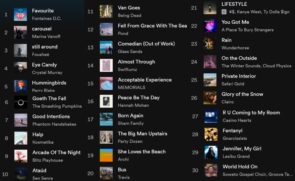 Más novedades de Adrianne Lenker, Alles Deren Schuld, Anelog, Angie McMahon, Animal Prince, Bella Marcy, Blase, Blitz Playhouse, The Blessed Madonna/Kylie Minogue, Blondfire, BODEGA, Bright Eyes, The Bug Club, Cal in Red, Cool Band, Cuff the Duke, cumgirl18, Cursive, Dale Clover/Ty Segall, Dancer, A Deer A Horse, Desire, Desperate Journalist, Doohickle Cubicle, Dino Expedition, dove blood, Drug Church, Eddie Vedder, Elias B. Rønnenfelt, Evil Armand, Fievel is Glauque, Gnarcissists, Good Rest, GRIDD, Half Waif, Hippo Campus, Honeyglaze, Hozier, Jamila Woods, Jordana, Katy J Pearson, Laurie Anderson/ANHONI, Leaf and Machine, Leon Bridges, Lola Young, Luna Li, Magic City Hippies, The Medium, Mercury Rev, The Mystery Lights, Micra, Nada Surf, Nick Lowe, Niles, Nilüfer Yanya, Orville Peck, Panda Bear/Sonic Boom, A Place to Bury Strangers, Psymon Spine, Ra Ra Viper, ratbag, Revival Season, R.Missing, Safari Gold, Saloon Dion, Sea Caves, Skeggs, Stephen Becker, Sugar Soap, The Smile, Sunset Rubdown, Think Denim, Dad, Thrillhouse, Toro y Moi, W.H.Lung, Whisper States o Wild Pink,