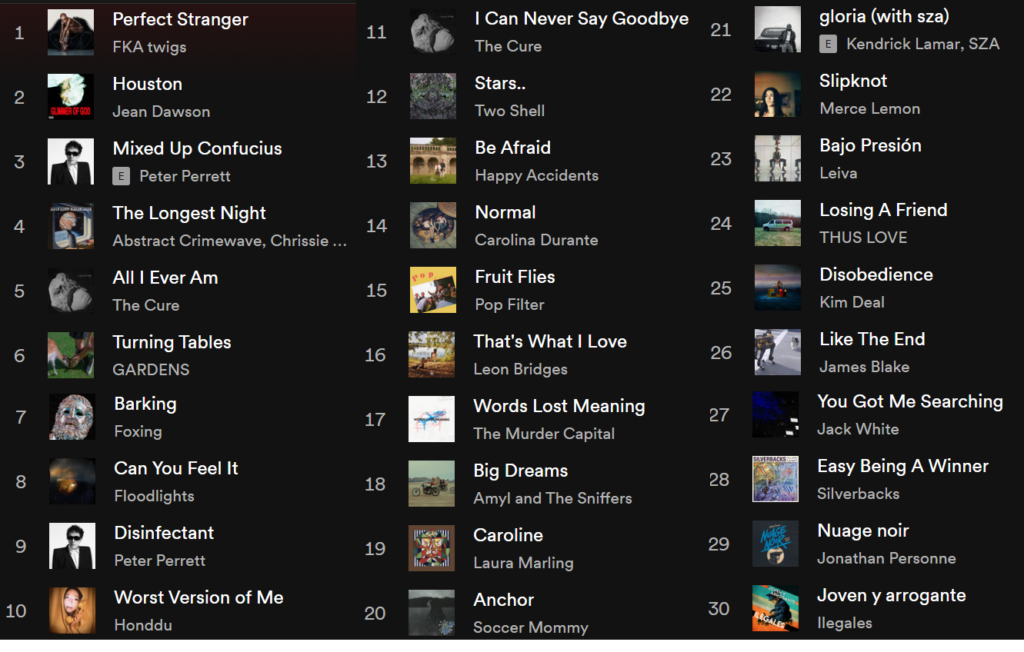 Y además los adelantos de Al Green, Antuan., April Fools, Bellefolie, Charlie Crockett, cistern, Clothing, Courting, crayon, The Dazed Minded, dearest, Decius, Desire, Disgusting Sisters, Divorce, dog eyes, DOPE LEMON, Dork, Edith Frost, Elise, Everything is Recorded, fantasy of a broken heart/Jordana, Fat Dog, FKA Twigs, Flat Party, flipturn, Flip Top Head, Floodlight, Franz Ferdinand, Frog Eyes,Gaspard Eden,Getdown Services, ggwendolyn, GLOSSER, Good Morning, Harrison Lipton, Haute & Freddy, Hetty Clark, Home Counties, hooper, Horsegirl, Jack White, Jadu Heart, James Blake, Joni, Joshua Woo, juicer, Julia Jean Baptiste, Lescop, Lexie Carroll, Lizdelise, Lone Striker, Los Campesinos!, Maribou State, mary in the junkyard, Mekons,Miso Extra/Metronomy, Miya Folik, Mood Bored, Morpho, The Murder Capital, Natalie Boulodis, Oklou, Phantom Sugar, Philine Sonny, PJ Harvey, Pterocat,Sabrina Sterling, Sam Fender, Saya Gray, The Sewing Club, Sleeper´s Bell, Spill Tab, Sport Coach, Squid, Sun June, Sunny War, Throwing Muses, VELIKA VELIKA, The Weather Station o WOOF. Y sonido nacional con Alberto Montero, Andrea Buenavista, Arde Bogotá, Begut, Cala Vento, Colectivo Colectivo, Confeti de Odio, Delaporte, Detergente Líquido, Ilegales, Joan Colomo, Joe Crepusculo, Leiva, Morgan, Pálida Tez, Queralt Lahoz, Sal del coche, Sanguijuelas del Guadiana, Sen Senra o Vuelo Fidji.