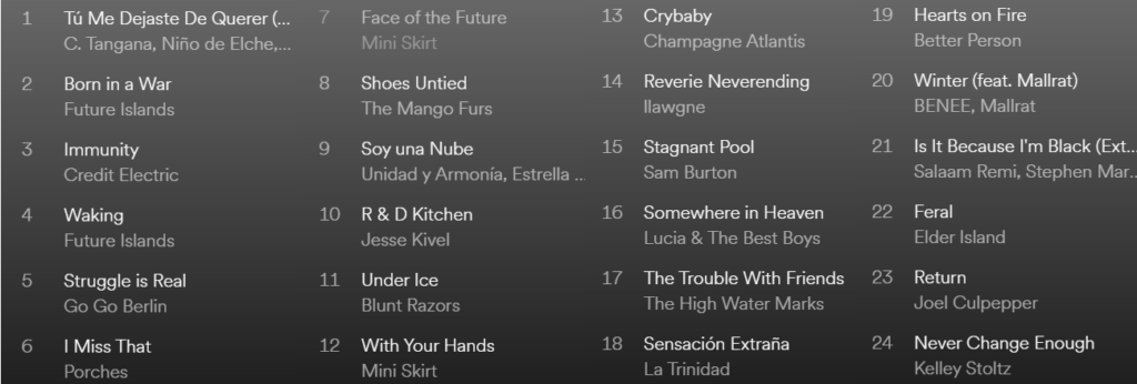 Además los nuevos singles de Northern Portrait, shame, Jazmine Sullivan, Fana Hues, Sam Fender, Steven Wilson, Talkboy, Bad Nerves, Mystic Peach, The Smashing Pumpkins, Lydia, KALI, Psymon Spine, Fujiya & Miyagi, Bad Operation, Kirin J Callinan, Vilde, Night Tapes, Jam City, Empress Off, Jade Bird, Balthazar, Benji Lewis, Savoia, Sipper, Laura Groves o Planet Loser, entre otros. Y no olvidamos sonido nacional con La Claridad, PIGMY, Escuelas Pías, Cora Yako, Nacho Casado, María Rodés y La Estrella de David, Chloé Bird o Dani Llamas.