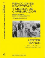 Reacciones Psicóticas y Mierda de Carburador (Libros del Kultrum) de Lester Bang. Esta desternillante antología de ensayos, reseñas, autopsias y semblanzas rescata del más inmisericorde de los olvidos algunas de las piezas más delirantes del impenitente grafómano y crítico por antonomasia del rock. Textos escogidos, entre mediados de los sesenta y los primeros albores de los ochenta, que vertebran la crónica de su quijotesca entrega a la causa que abrazaría sin remisión posible; pues creía apasionadamente en la fuerza redentora y transformadora de la música rock, reivindicándola como la más vital e innovadora de las artes populares, sin dejar por ello de denunciar sus más absurdos excesos, ni de vilipendiar tampoco a quienes fueron objeto de tan efímera idolatría: John Lennon, Lou Reed, John Coltrane, The Clash, David Bowie, James Taylor, Kraftwerk… Tras sobrevivir a sus incesantes y orgiásticos devaneos con las drogas y el alcohol, no deja de haber cierta ironía en el hecho de que Bangs – arriba con Springsteen- muriera tempranamente a causa de las complicaciones de un proceso gripal en 1982, cuando apenas contaba 33 años. Forjó en poco tiempo un estilo excéntrico, personal y salvaje que dejaría una impronta indeleble en la historiografía roquera. Cada ensayo es un acrobático alarde de situacionismo sin rumbo aparente, aunque compartan todos, por igual, la desbordante intensidad de la apostasía iconoclasta que precede al desbarre —y le costaría el despido en Rolling Stone, oficiado por el, a la sazón, todopoderoso Jan Wenner—. Cuando Bangs compone, a modo de epitafio, su propia semblanza afirma: “la mayoría de los intentos por examinar el rock en términos academicistas parecen irremediablemente pretenciosos, carentes de las mismas cosas que hacen que esta música sea tan emocionante: su franqueza emocional y su impertinente sentido del humor”. Fiel a esta premisa abordó siempre la transcripción de sus impresiones sin temor a contravenir los intereses de la industria discográfica. Dar cuenta de cuanto se cocía entonces en una coyuntura tan incómoda para el rocanrol —a caballo entre el ocaso del sueño hippy y el colapso del punk— fue una auténtica proeza. El punk y la new wave traerían consigo, para mayor gloria, la aniquilación masiva de toda una generación de críticos de rock, pero Bangs merecía sobrevivir a esa extinción. Lo triste es que no pudiera sobrevivirse a sí mismo… Traducción de Ignacio Juliá. “Con afecto, brutalidad, furia e irreverencia, y empuñando una prosa conmovedora, laberíntica e inmisericode, nos mostró cómo la propia música podía ofrecernos un sinfín de opciones vitales…Bangs fue uno de los más preclaros plumillas que ha dado nuestra profesión.” The New York Times