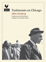 Testimonio en Chicago recoge las actas del interrogatorio con un prólogo de Fernando Pivano y la crónica de la comparecencia de Ginsberg delante de los jueces que se publicó en The New York Review of Books en 1970 firmada por Jason Epstein, editor, escritor, periodista y co-fundador de la revista. Trad. Julia Osuna.