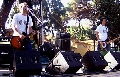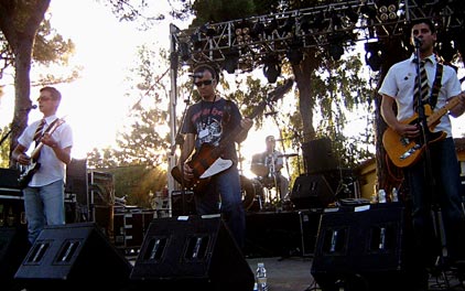 Gran concierto el que dieron los almerienses Profesor Popsnuggle. Presentaron casi al completo su nuevo disco, Turismo, un maravilloso compendio de buenas melodías guitarreras que, como ellos mismos han comentado, recuerdan a ”los años 60, hoteles, Torremolinos, playas y guateques”. Vamos, que su actuación venía de perlas en este Marbella Grill Festival. Lejos ha quedado la época, allá por el 97, en que les comparaban con Los Planetas. Su estilo es completamente diferente en la actualidad, tanto musical como estéticamente. Ataviados con ajustadas camisas, corbatas y alguna chapa (¡viva los mods!), comenzaron su actuación ofreciendo pinceladas de todo lo que vendría después: melodías bien construidas y pegadizas, letras desenfadas, buenas guitarras… Todo ello sin olvidar los coros al más puro estilo Beach Boys y unos teclados deliciosos que convierten a Profesor Popsnuggle (nombre sacado de una serie televisiva de los ochenta) en un grupo más que interesante. Sólo hay que escuchar temas como No sé que hacer, Eterno masculino, La maleta o El turismo. Hubo menos público que en la actuación de Airbag, pero más carcajadas y bailoteo. Y, por supuesto, mejores canciones.