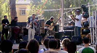 El primer grupo en aparecer sobre el Escenario Picnic fueron Ganjazz. La historia de estos malagueños se remonta hasta hace un par de años, cuando Emilio, Jose, Lucas y Torres comenzaron a tocar juntos gracias a distintas jam sessions organizadas a lo largo de la costa. Pronto se uniría a ellos Adrián, procedente de Cuba, que se convertiría en el flautista de la banda. Mientras ofrecían sus conciertos y la formación se iba consolidando, Ganjazz buscaban a alguien “que coronara nuestra música con descargas reivindicativas de carácter social y que estuvieran bañadas de una mijilla de alegría, ironía y sobretodo frescura». El mijeño Ale encajaba perfectamente en el perfil requerido y el grupo se completó al fin. ¿Qué ofrecen en concierto? Ni más ni menos que lo que pretenden: buenas dosis de funk, jazz y rock que sirven de apoyo para unas letras que, como ellos mismos buscan, tratan diferentes temas sociales. Todo ello sin perder el humor, los bailes y una tremenda energía que puso en moviemiento a los asistentes al Parque Vigil de Quiñones.