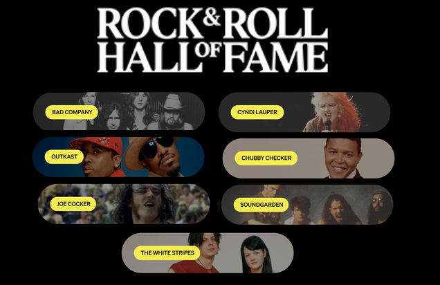 Bad Company, Joe Cocker y Chubby Checker, junto con Soundgarden han entrado finalmente tras su tercera nominación mientras que White Stripes y Cyndi Lauper, tras la segunda. El dúo de hip-hop Outkast completa la categoría de Artistas Intérpretes, en su primera nominación.