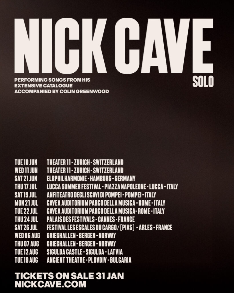 Nick Cave realizará una nueva serie de conciertos en solitario este verano, acompañado por Colin