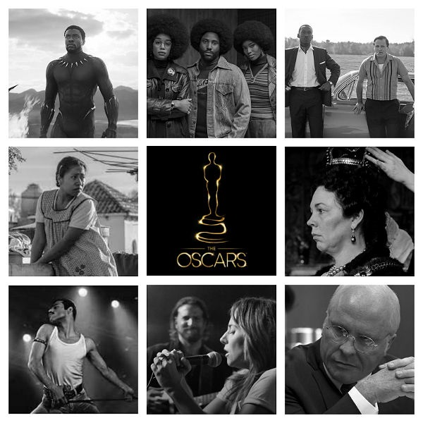La favorita también es otra de las firmes candidatas, con el mismo número de nominaciones, un total de diez, que competirá con Bohemian Rhapsody, Ha nacido una estrella, El vicio del poder, Infiltrado en el KKKlan y Black Panther. Hay varias novedades en esta edición en la categoría a mejor película: la primera nominada en castellano (Roma) y la primera de superhéroes (Black Panther).