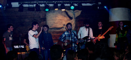 Los Nominees con los Happy Loosers a los coros (a la izqda. tapando a Bruno) y Santi Campos a la guitarra