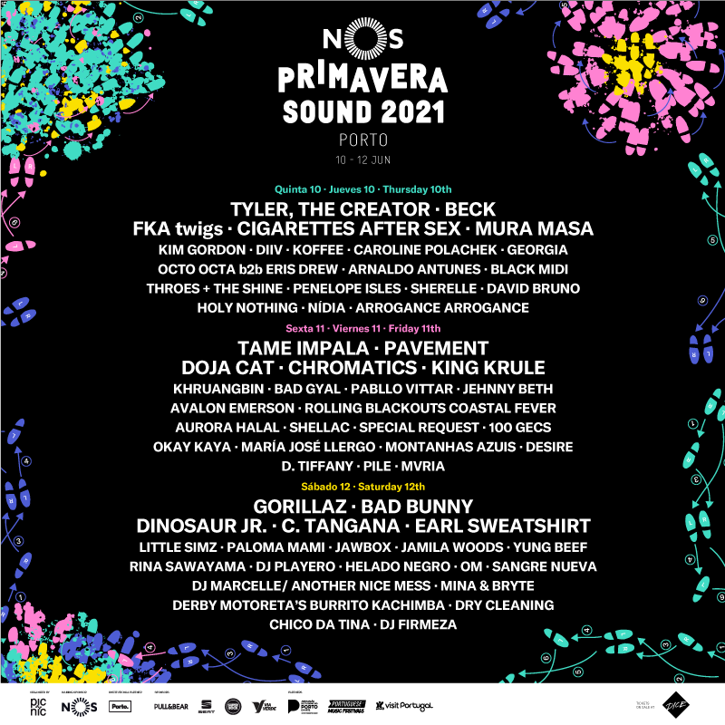 Si hace unos días se revelaba el cartel (y el casi inmediato sold out) de Primavera Sound Barcelona 2021, hoy es la edición portuguesa la que anuncia su lineup completo. NOS Primavera Sound Porto 2021 se celebrará del 10 al 12 de junio del año que viene en el Parque da Cidade con el mejor cartel de su historia, encabezado por el icono del hip hop global Tyler, The Creator, Tame Impala con su pop psicodélico de masas por primera vez en el festival, los Gorillaz de Damon Albarn, la seducción majestuosa de FKA twigs, la sensación pop del momento Doja Cat, Pavement en su cada vez más esperada nueva reunión, Bad Bunny como embajador mundial de la música latina, Beck en su condición de leyenda viva de la música y King Krule como nuevo referente generacional directamente desde las tinieblas.