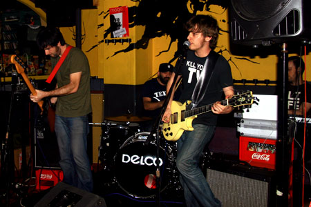 La Comuna 76, fue el escenario pintoresco donde Delco, entre paredes que homenajeaban a Roy Linchestein y discos de vinilo y maniquíes como elementos decorativos propios del arte más kitsch, quisieron dar lo mejor de sí mismos. Los pocos que el pasado sábado asistimos a su concierto en Córdoba no sentimos menos que impulsos eléctricos activar nuestros cerebros, hasta trasformar una simple emoción en algo más trascendental. La noche se hizo esperar, pero esta vez no fue por los músicos. Una hora hizo falta para que el difícil público cordobés hiciera acto de presencia, aunque en una minúscula representación.
