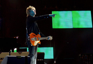 En este momento el concierto empezó a ser más rockero. Una tras otra fueron deslizándose Drive my car, Get back, Band on the run y Back in the USSR, en las que tocó el bajo, y que subieron la adrenalina a gran velocidad tras el set acústico. Entonces Paul se sentó al piano y llegó el momento más espectacular de la noche: el tema que compuso junto a los Wings y a George Martin para la banda sonora de la película de James Bond, Live and let die. No sólo las trepidantes imágenes en las diferentes pantallas, ni los cerca de diez surtidores de fuego en el escenario provocaron tan increíble espectáculo: por detrás del escenario empezaron a brotar fuegos artificiales que hicieron disfrutar tanto a los mayores (la media de edad podía estar perfectamente en los 45) como a los pequeños (hijos de los anteriores).