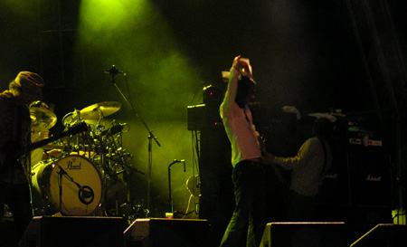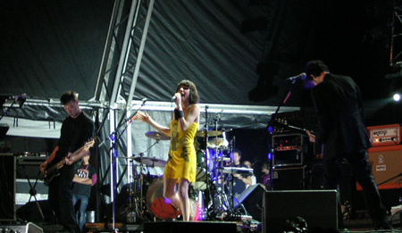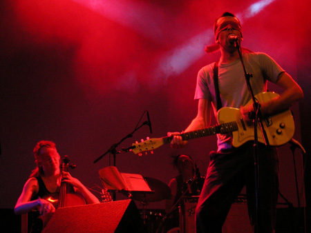 La madrugada del viernes, contábamos antes, fue de los Scissor Sisters. El sábado pertenecía a los otros abanderados del movimiento gay. The Hidden Cameras dieron un concierto que aunó canciones de su primer álbum The smell of our own (Rough Trade, 2003) y del que en septiembre será su segundo disco Mississauga goddam. Estas últimas lastraron un tanto el concierto por el desconocimiento del público que no dejaba de pedir temas como Ban marriage y que finalmente interpretaron con los ojos vendados en protesta por un mundo que ningunea su opción sexual.